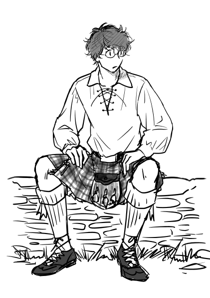 一説には、キルトの前側がめくれて